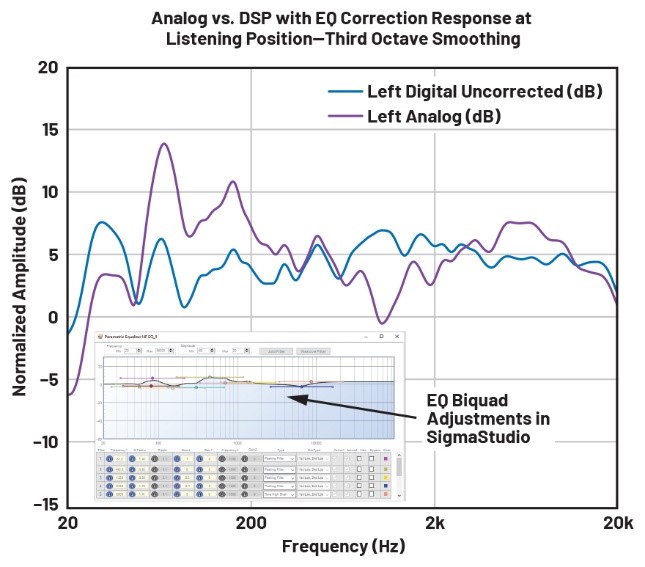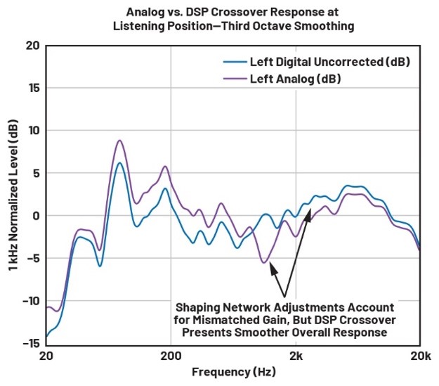 在模拟系统中,扬声器组件的变化只能通过增加分频器网络复杂性、严格匹配网络与驱动器的特性或缩小扬声器组件的容差来补偿。所有这些解决方案都增加了达到市场质量要求所需的成本。