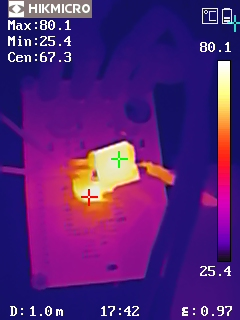 图10 YX201052热成像图(VIN = 80V, VOUT = 12V, IOUT = 5A)