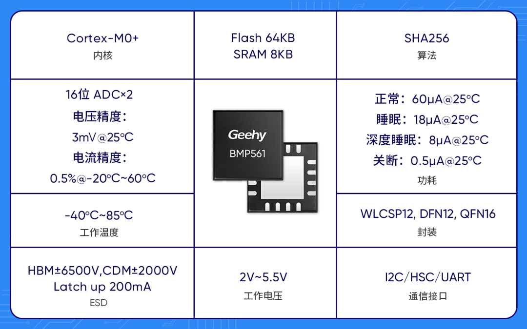 BMP561:集成高精度ADC采样电流和电压,并进行电量估算;