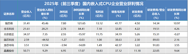 对于技术密集型的嵌入式CPU行业而言,A+H布局的价值不仅在于拓宽融资渠道,更在于提升企业国际化融资能力与品牌影响力,为技术研发与全球化布局注入动能。从业务基础来看,晶晨股份2025年前三季度营收达50.71亿元,净利润6.95亿元,创下历史同期新高,研发费用同比增长9.64%,其智能终端SoC芯片累计出货量超10亿颗,在消费电子嵌入式CPU领域占据优势地位,港股上市募资计划重点用于提升研发能力与全球客户服务体系建设;北京君正则凭借“计算+存储+模拟”协同优势深耕车规级与AIoT赛道,2025年前三季度营收34.37亿元,净利润2.43亿元,募资将聚焦技术研发与战略收购,助力高算力嵌入式芯片的研发攻坚。两家企业的A+H布局有望引发示范效应,带动行业内其他企业通过多元化融资方式汇聚资金,为国产嵌入式CPU在先进制程、生态建设等关键环节的突破提供资金保障,加速国产替代进程。