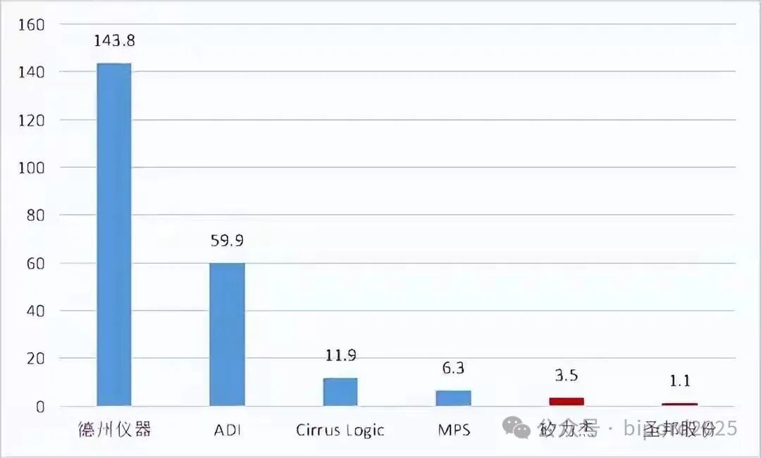 产品丰富度(料号数):TI的模拟芯片料号数超过8万款,而国内龙头圣邦股份约为5200款,纳芯微约1700款,中外头部厂商料号数相差超17倍。TI提供从消费级到车规级、从低功率到高功率的完整解决方案矩阵。